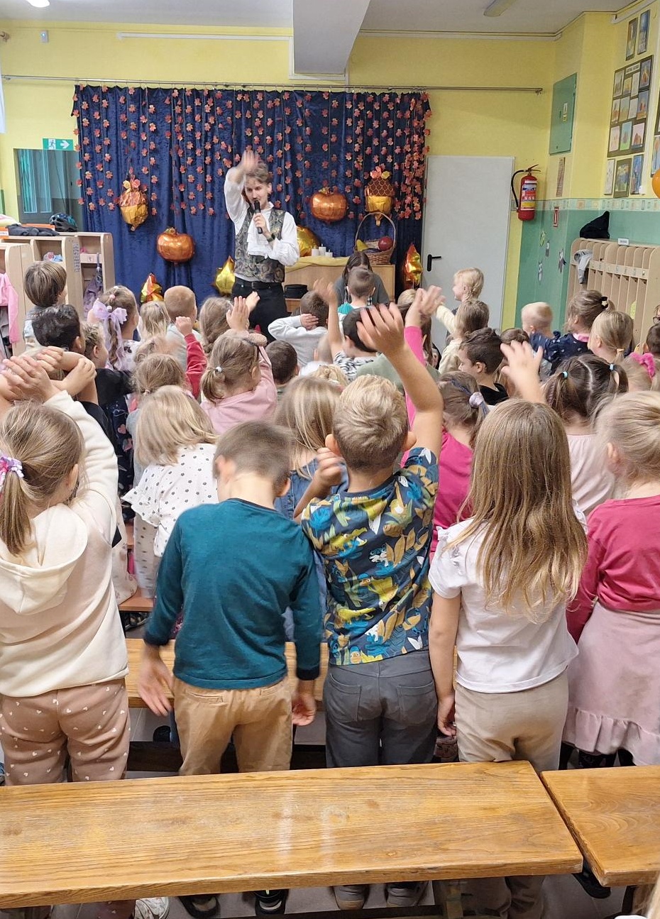 30 września w naszej placówce po raz pierwszy w tym roku szkolnym odbyła się audycja muzyczna z Bachmanem, podczas której dzieci mogły poznać nowe instrumenty oraz posłuchać muzyki na żywo.