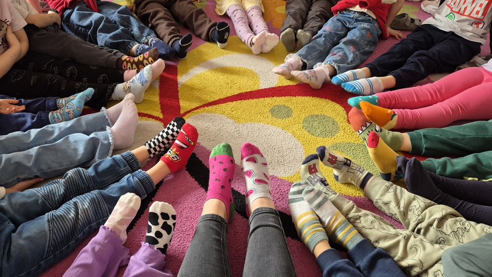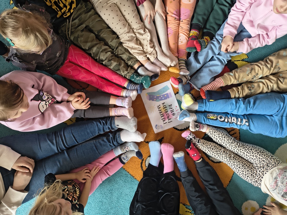 20 marca w naszym przedszkolu obchodziliśmy Dzień Kolorowej Skarpetki, który jest symbolem akceptacji, różnorodności oraz solidarności z osobami z zespołem Downa. Tego dnia dzieci do przedszkola przyszły ubrane w dwie różne, kolorowe skarpetki - im bardziej nie do pary, tym lepiej! Podczas zajęć rozmawialiśmy o tym, jak ważne jest, aby każdy z nas czuł się wyjątkowy i akceptowany. Przedszkolaki dowiedziały się, że różnimy się między sobą, ale właśnie te różnice sprawiają, że świat jest ciekawszy. Nie zabrakło również wspólnych zabaw i prac plastycznych, w których królowały barwy i kreatywność.