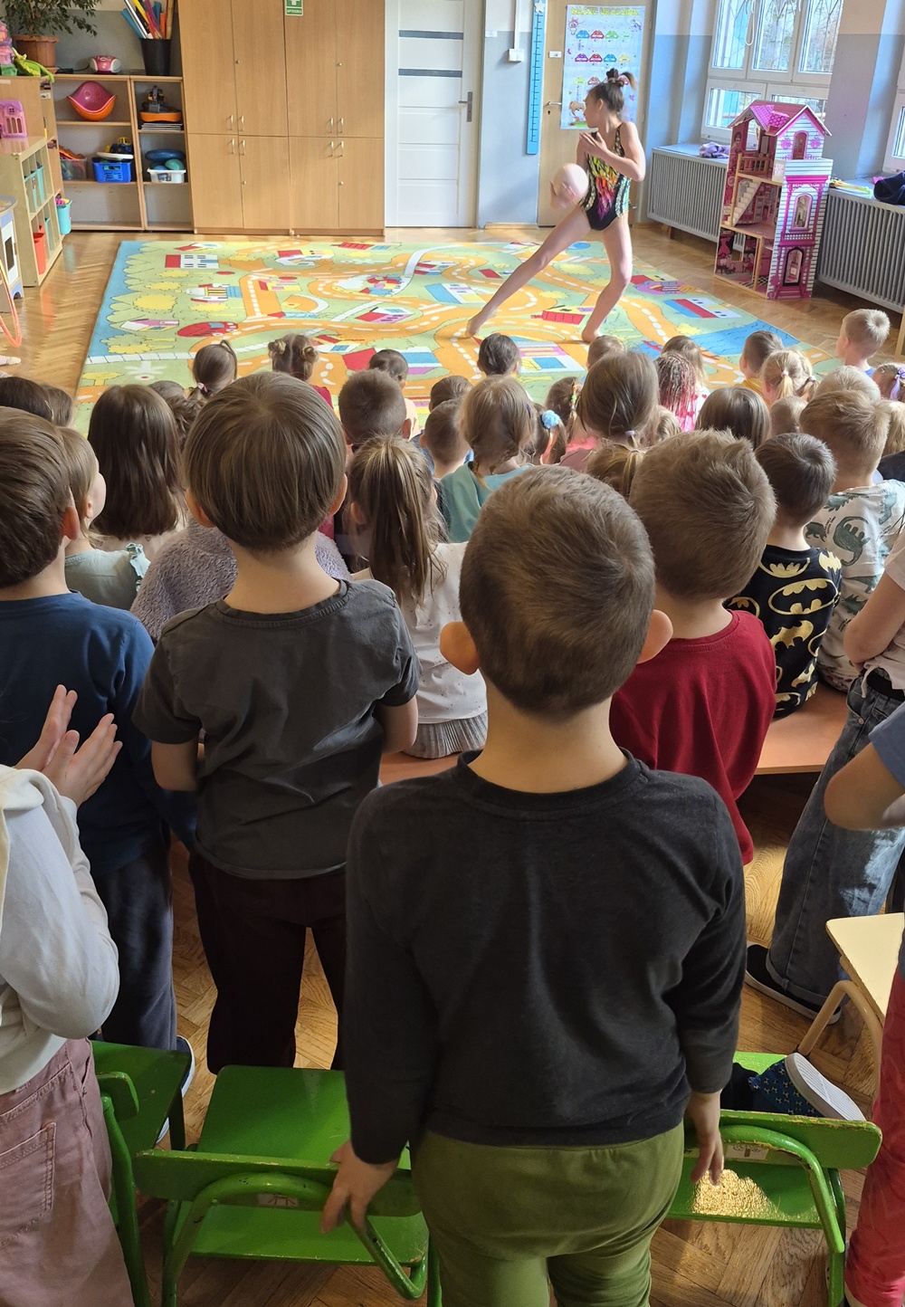 Dziewczynki z SP nr 41 z pokazem gimnastyki artystycznej w naszym przedszkolu