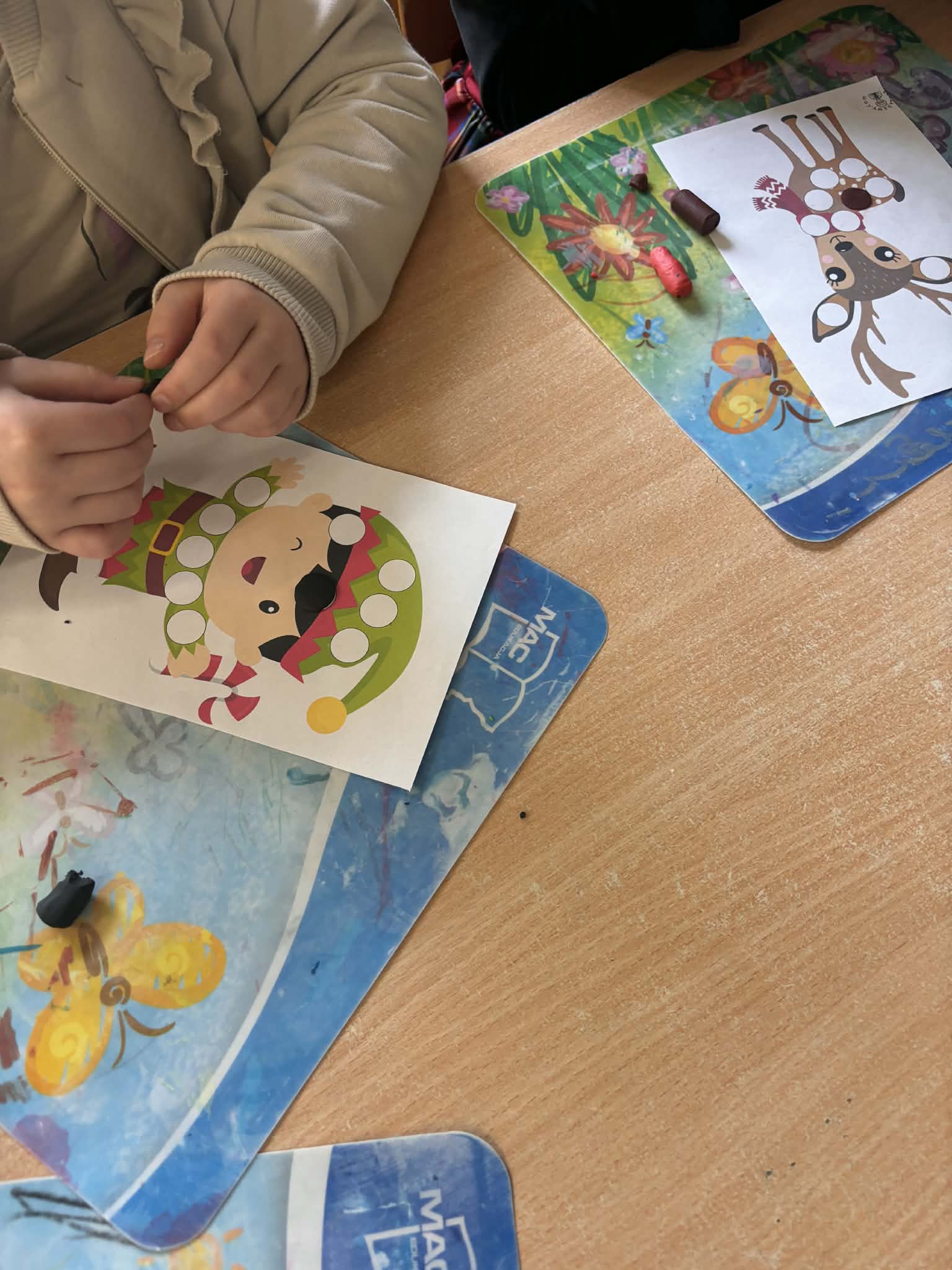 W grudniu dzieci z grupy Niebieskiej z uczestniczyły w zajęciach plastycznych z wykorzystaniem plasteliny. Przedszkolaki samodzielnie tworzyły świąteczne postacie, ćwicząc sprawność dłoni i palców oraz rozwijając wyobraźnię twórczą. Podczas lepienia dzieci uczyły się precyzyjnych ruchów, łączenia elementów oraz planowania kolejnych etapów pracy. Zajęcia sprzyjały koncentracji, cierpliwości i wytrwałości w dążeniu do celu. Aktywność plastyczna wprowadziła dzieci w świąteczny nastrój, a jednocześnie była doskonałą okazją do rozmów o tradycjach bożonarodzeniowych oraz symbolach związanych z tym wyjątkowym czasem.