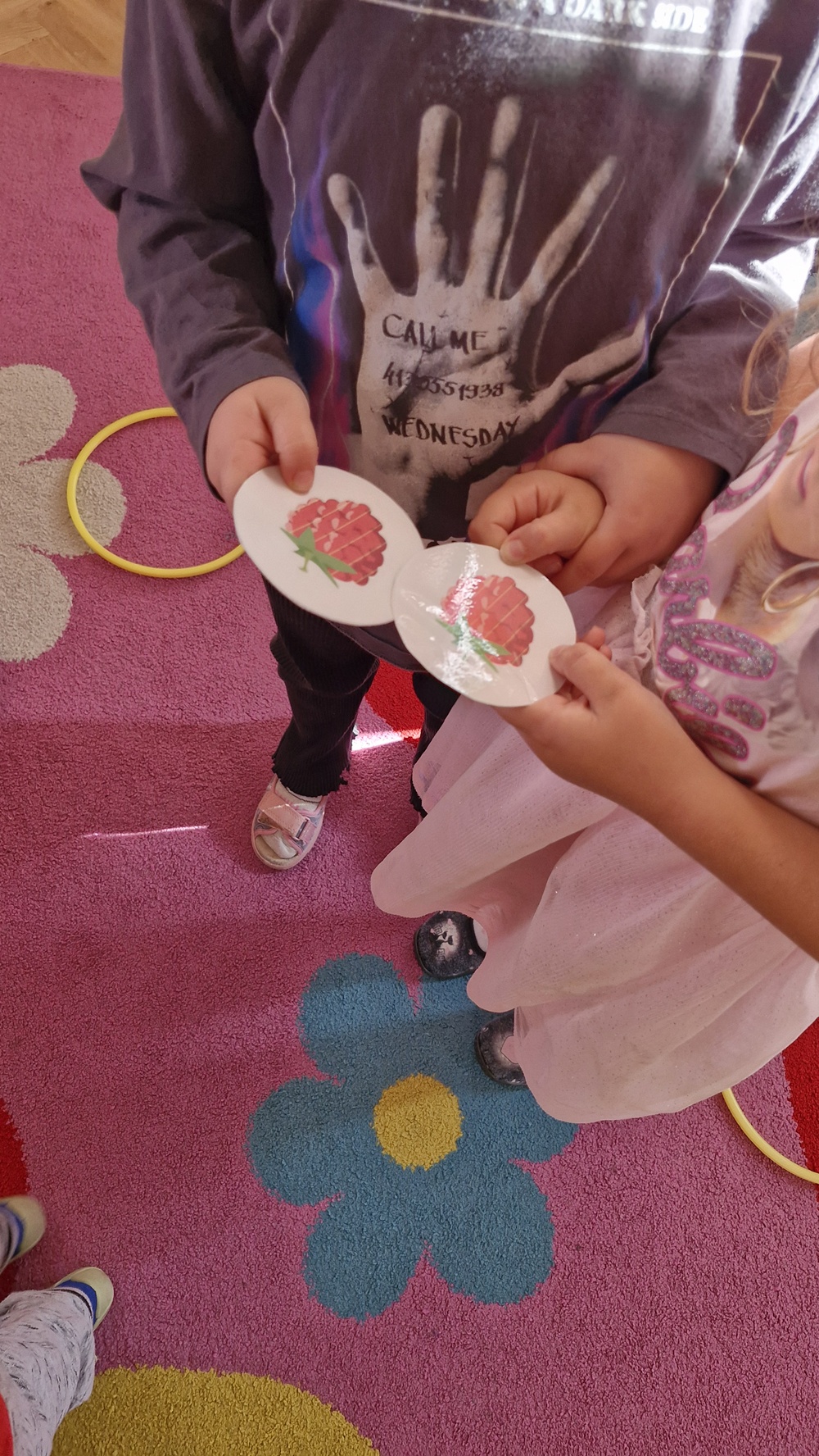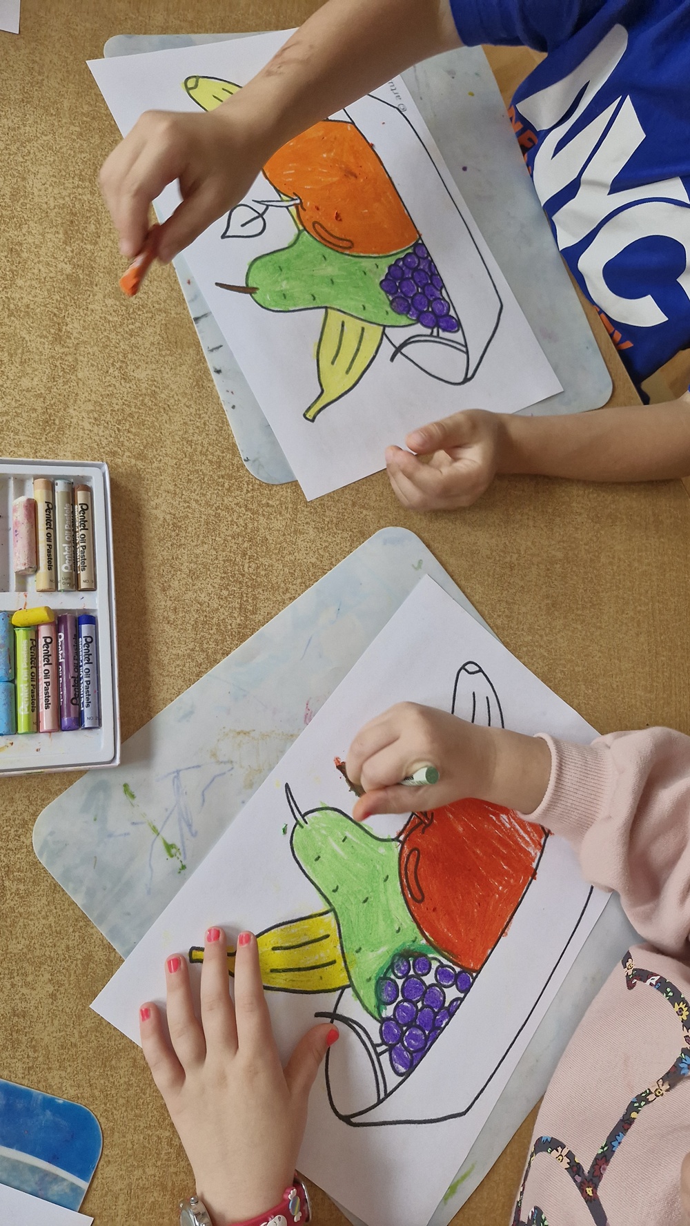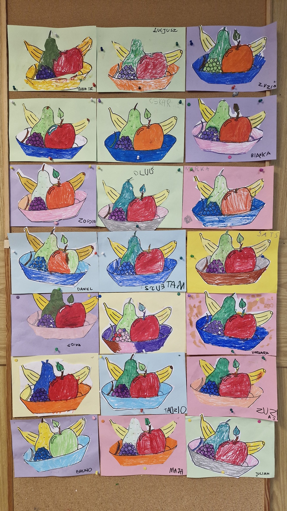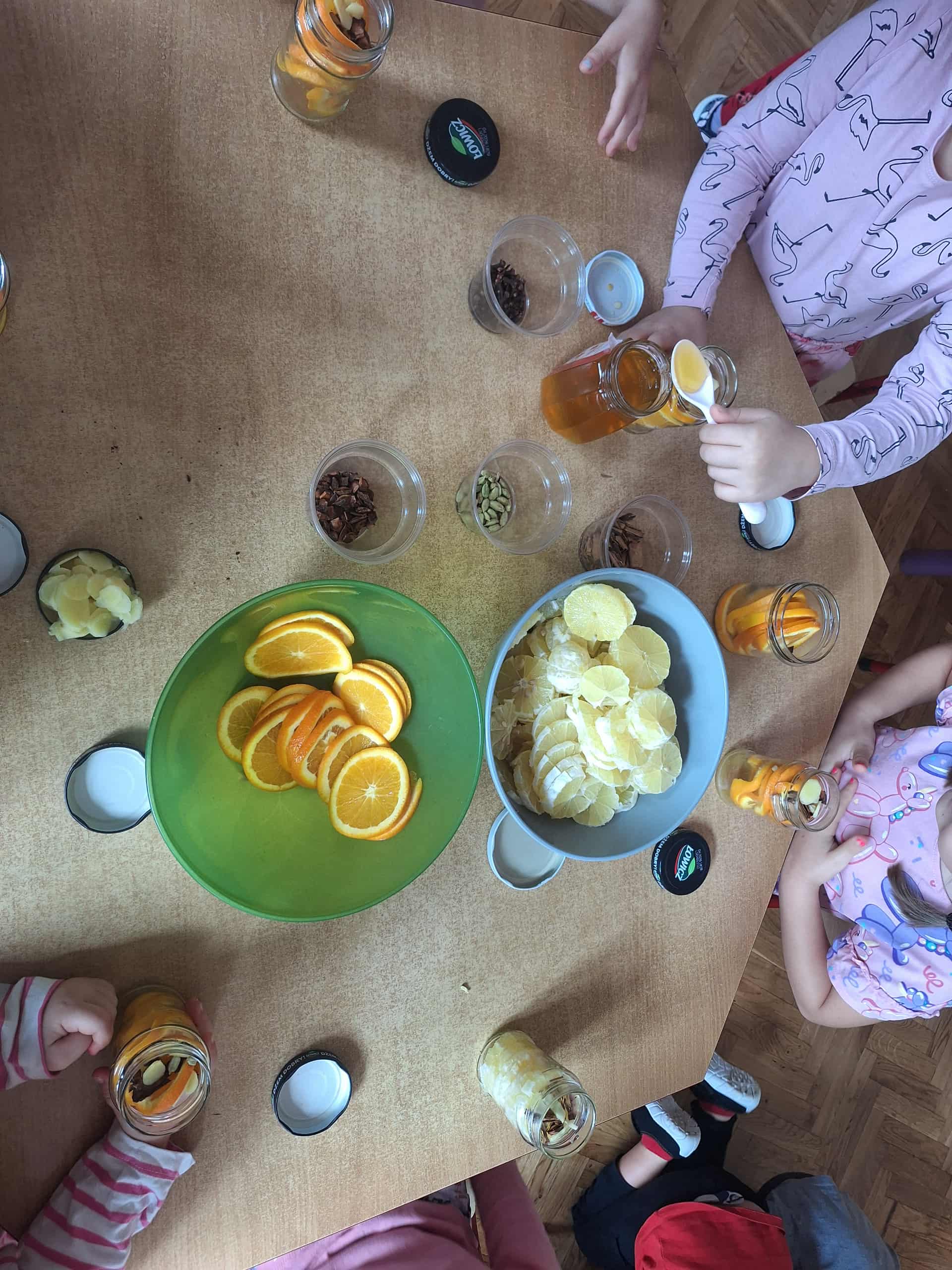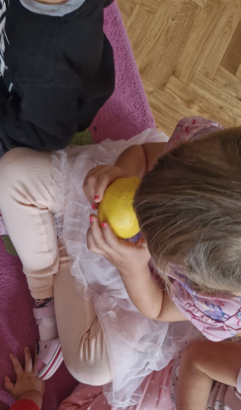 Ostatni tydzień to czas rozmów o warzywach i owocach. Podczas zabaw przypominaliśmy sobie nazwy owoców i warzyw, klasyfikowaliśmy je, wykorzystywaliśmy emblematy do zabaw ruchowych. Nie zabrakło również zabaw matematycznych – przeliczania oraz kontynuowania rytmów. Dzieci wykonały prace plastyczną, podczas której kolorowały pastelami kontury owoców w koszyku, następnie wycinały i przyklejały na kolorową kartkę. Największą atrakcją tego tygodnia było jednak przygotowanie syropu z cytryn i pomarańczy na piknik. Dzieci miały okazję dotknąć i powąchać owoce oraz przyprawy, które wykorzystywaliśmy. Nie brakowało również chętnych do spróbowania plasterka cytryny.