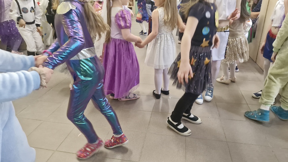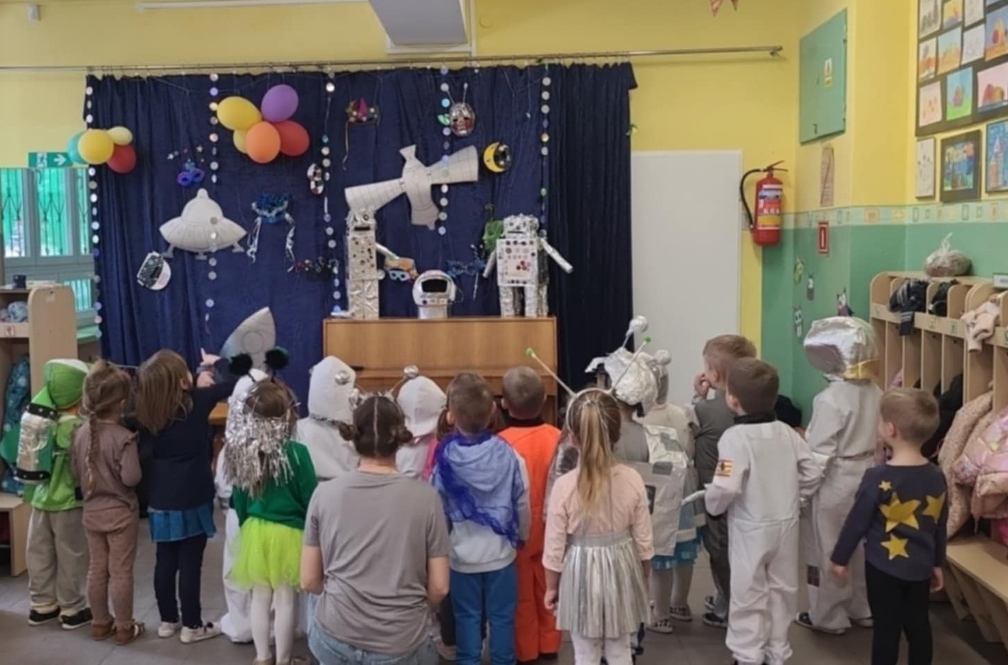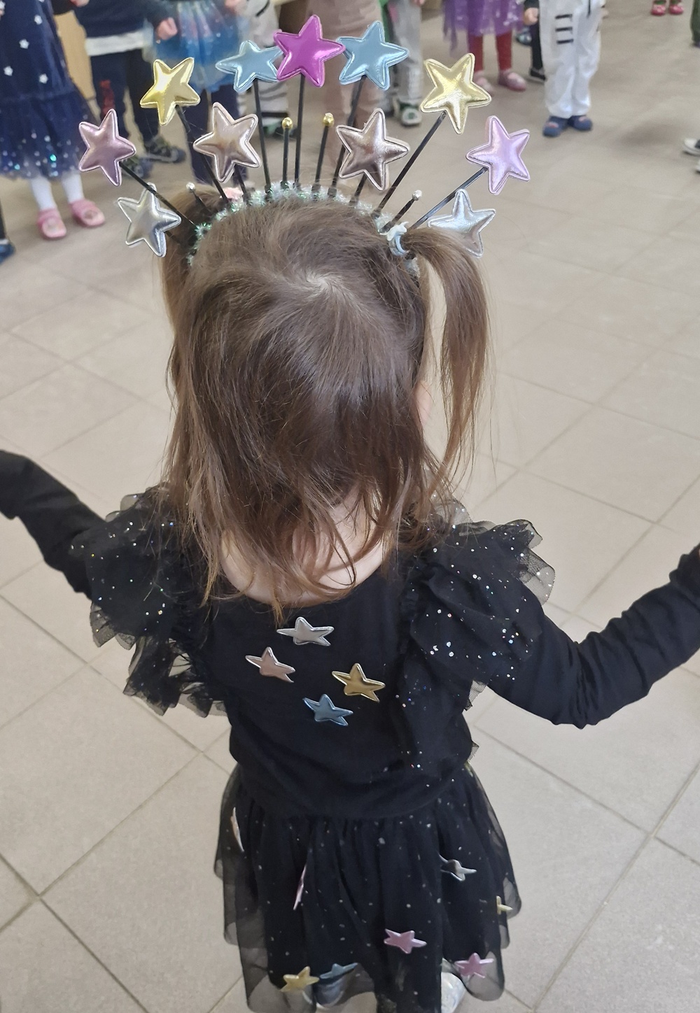 W naszym przedszkolu odbył się wyjątkowy Bal Karnawałowy, który w tym roku przeniósł nas wszystkich wprost do kosmosu. Tego dnia nasze przedszkolaki zachwyciły pomysłowością i kreatywnością. Wśród uczestników pojawili się m.in.: dzielni astronauci, błyszczące gwiazdki oraz wesołe ufoludki. Podczas balu nie zabrakło tańców i wspólnych zabaw przy muzyce. Przedszkolny hol wypełnił się radością, śmiechem i energią małych odkrywców kosmosu. Na zakończenie balu nastąpiło również uroczyste rozstrzygnięcie konkursu na Kosmiczną Maskę Karnawałową.