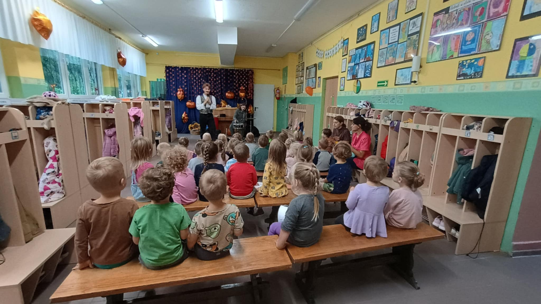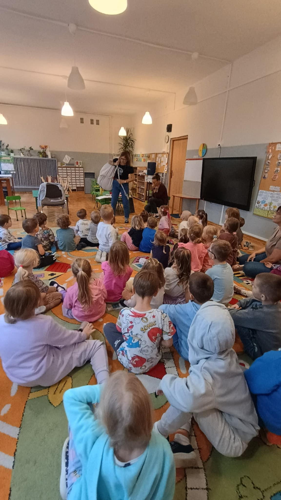 Od najmłodszych lat dzieci poznają różne zawody. Już w przedszkolu wiedzą, że każda praca jest ważna, potrzebna, że każdy zawód trzeba szanować. W tym tygodniu odwiedziła nas Straż Miejska - poznaliśmy zasady pracy, zakres obowiązków oraz atrybuty strażników miejskich. Uczestniczyliśmy również w audycji muzycznej " Spotkania z Bachmanem" - poznawaliśmy różne instrumenty muzyczne oraz rozmawialiśmy na temat zawodu muzyka. Dziewczynki z grupy zielonej nie zapomniały również o Dniu Chłopaka, rozdały przygotowane przez siebie laurki oraz super dyplomy. W październiku odbyło się spotkanie autorskie z pisarką i ilustratorką książek "Stonoga Jadzia", dzieci po wysłuchaniu opowiadania chętnie uczestniczyły w zabawach ruchowych.