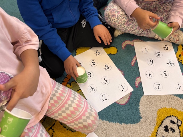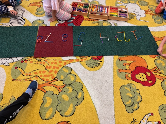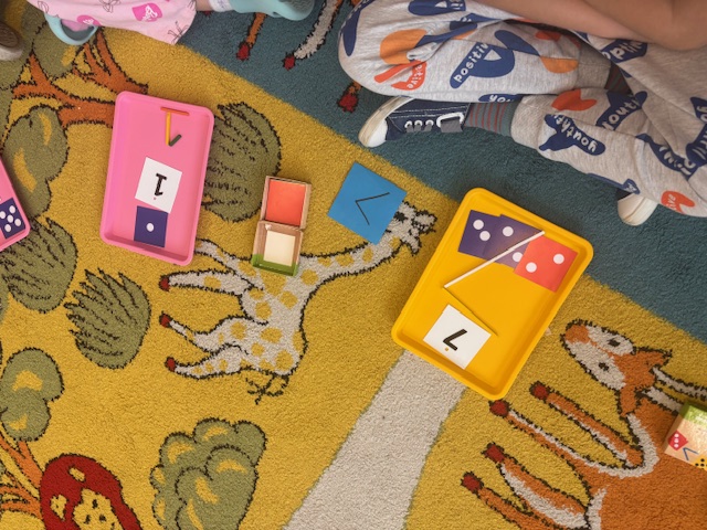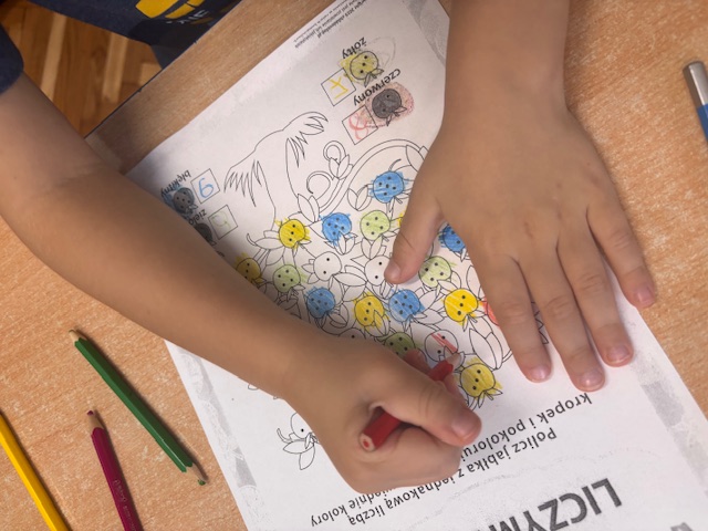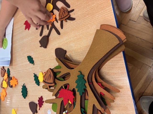 We wrześniu przypominaliśmy sobie cyfry, znaki większości, mniejszości i równości oraz figury geometryczne. Dzieci w różnorodny sposób, wielozmysłowo utrwalały wiadomości. Podczas zadań słuchowych, zaznaczały liczbę usłyszanych dźwięków, perforowały i dotykały figur geometrycznych, liczyły jesienne liście na filcowych drzewkach. Uczyły się współpracy, pracując w parach, korzystając z darów Froebla układały cyfry, dopasowując do nich odpowiednią liczbę kropek, a także decydowali, która z cyfr jest większa.