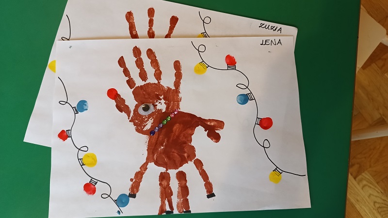 Grudzień to czas oczekiwania na Święta Bożego Narodzenia. W tym czasie intensywnie przygotowywaliśmy się do uroczystości świątecznej z udziałem Rodziców, ale nie tylko. Dzieci pracowały nad koordynacją wzrokowo-ruchową i doskonaliły umiejętność orientacji w przestrzeni na kartce, chętnie wykonując świąteczne zadania oraz uczestnicząc w zabawach ruchowych. Wykonały pracę plastyczną – świąteczne renifery. Z niecierpliwością czekały na to, czy w tym roku przybędzie do nich wyjątkowy gość – Święty Mikołaj, który oczywiście nie zawiódł przedszkolaków. Radości nie było końca podczas zabaw prezentami od Świętego Mikołaja – płytkami sensorycznymi, laleczkami oraz klockami magnetycznymi.