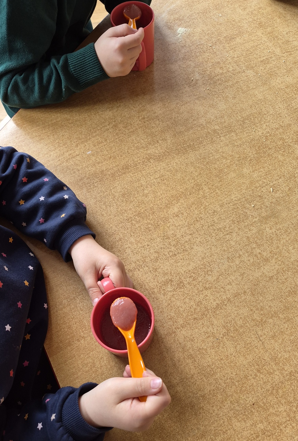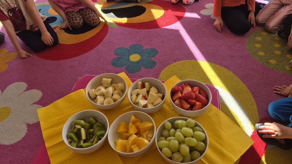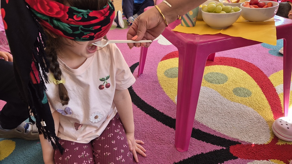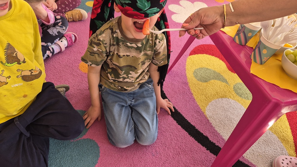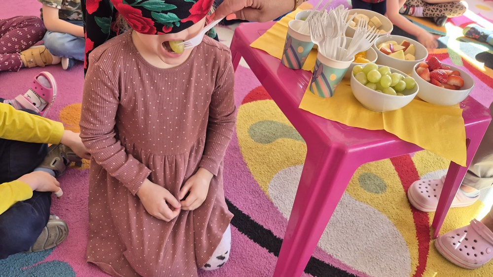 Przedszkolaki z grupy fioletowej biorąc udział w ogólnopolskim projekcie edukacyjnym „Gramy zmysłami” skupiły się na niezwykle ważnym zmyśle – zmyśle smaku. Podczas zajęć dzieci miały okazję uczestniczyć w owocowych zagadkach smakowych. Aby było jeszcze ciekawiej, przedszkolaki miały zasłonięte oczy, dzięki czemu mogły w pełni skupić się na rozpoznawaniu smaków. Na zakończenie dzieci spróbowały pysznego musu owocowego i starały się odgadnąć, z jakich owoców został przygotowany. Zajęcia były smakowite, ale i wartościowe – pozwoliły dzieciom rozwijać ich zmysły poprzez zabawę i doświadczenie. Radości nie było końca.