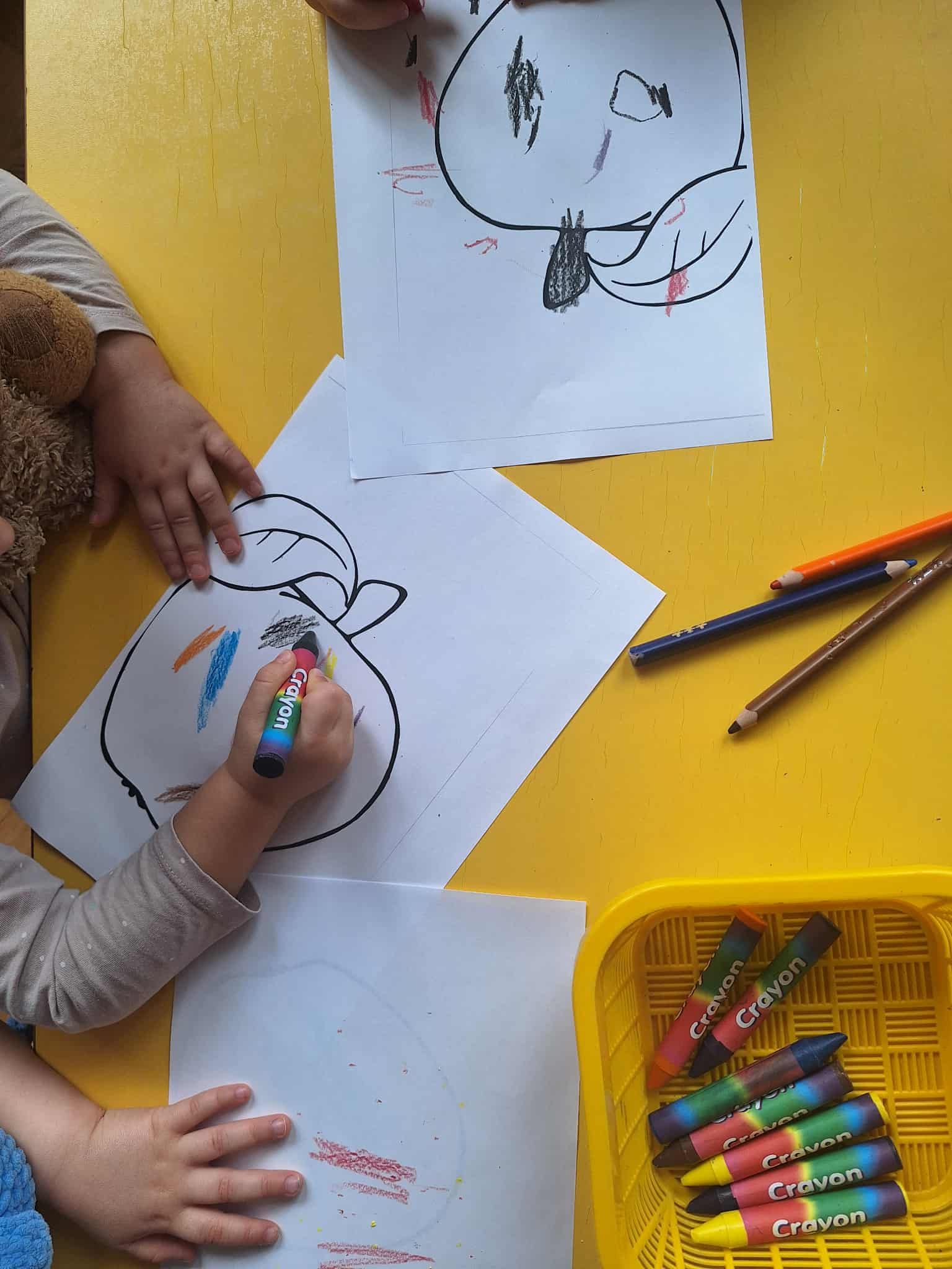 W październiku odbyło się w naszej grupie wielkie wydarzenie - Pasowanie na Przedszkolaka. Było to wyjątkowe wydarzenie, podczas którego nasze maluchy oficjalnie dołączyły do grona przedszkolaków. Uroczystość była pełna uśmiechu, piosenek i wspólnej zabawy. Każde dziecko zostało symbolicznie pasowane przez Panią Dyrektor, a następnie otrzymało pamiątkowy dyplom. W tym jesiennym miesiącu rozmawialiśmy także o skarbach sadu. Nie zabrakło owocowych aktywności oraz zabaw plastycznych.