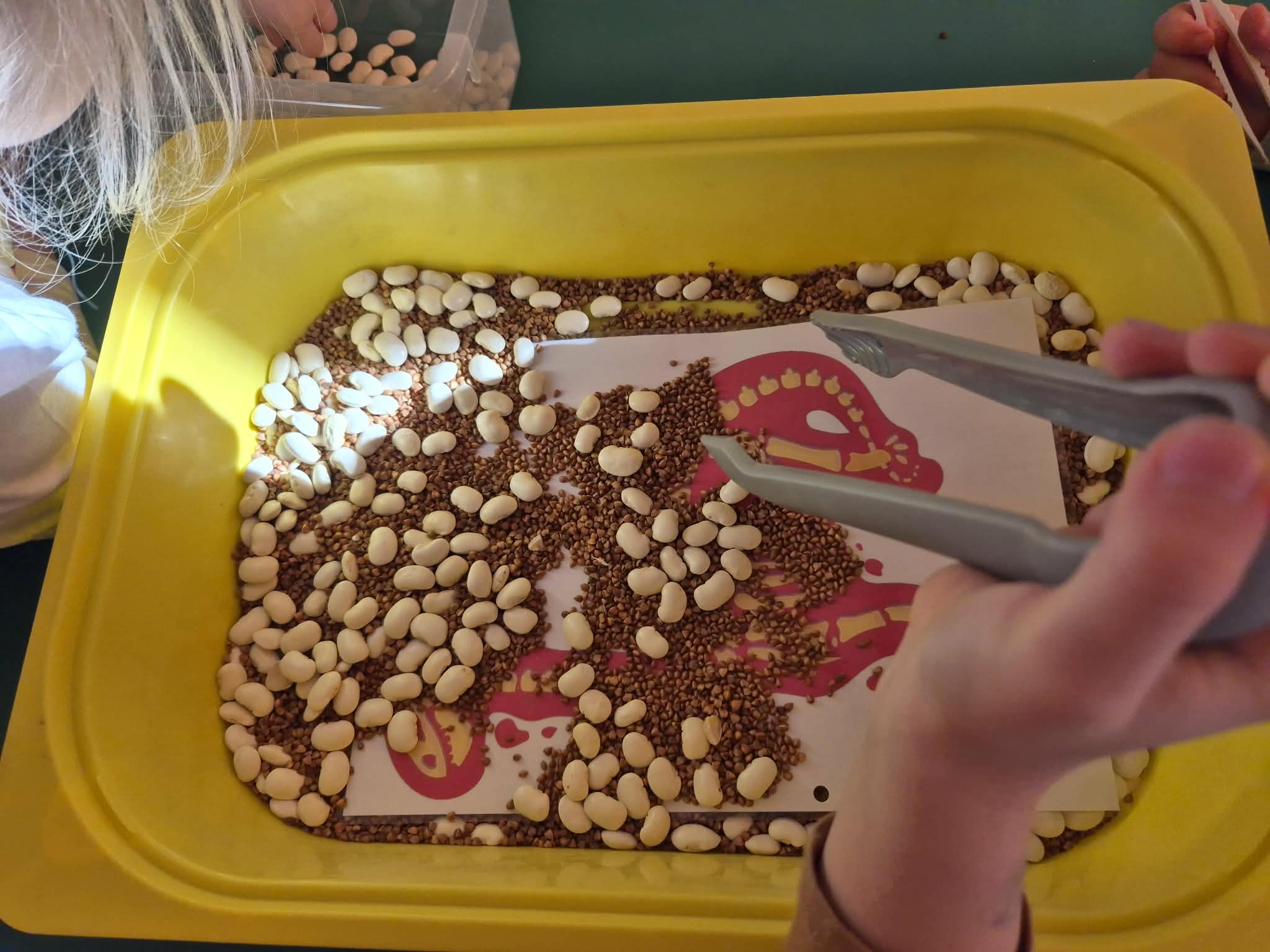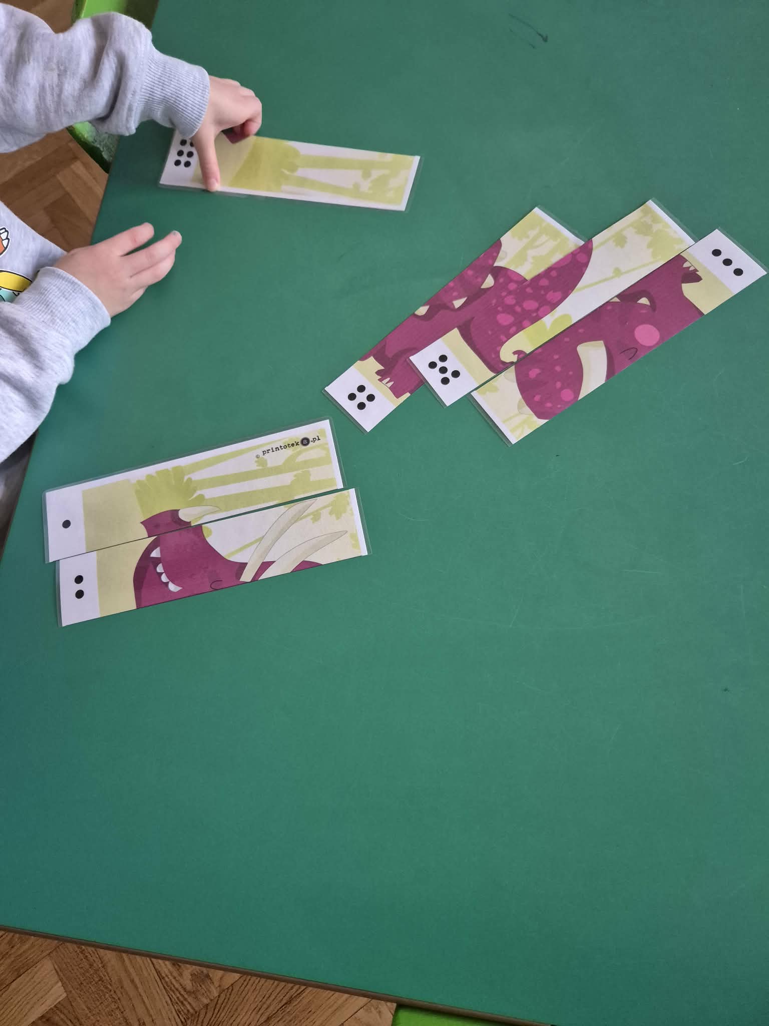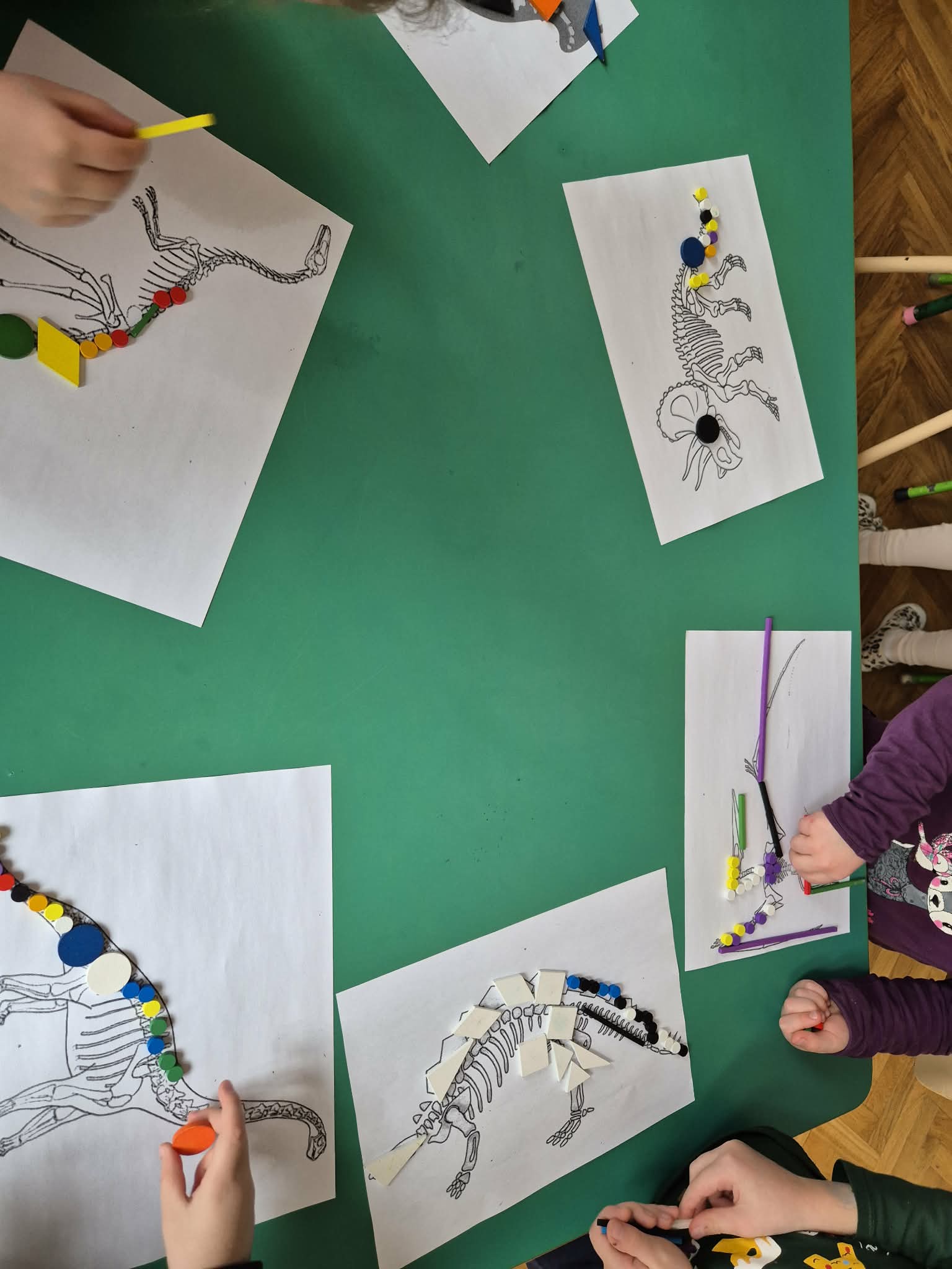 Grupa Zielona wyruszyła w niezwykłą przygodę śladami za dinozaurami. Poznawaliśmy prehistoryczne zwierzęta, w jakich środowiskach żyły i czym się żywiły. W ogrodzie przedszkolnym dzieci szukały tych niezwykłych zwierząt ukrytych w różnych miejscach ogrodu. Dzieci uczestniczyły w zajęciach sensorycznych z pipetkami , dinozaury były w galaretce oraz zamrożone w lodzie , dzieci sprawdzały, który dinozaur szybciej rozmrozi czy w ciepłej czy zimnej wodzie. Dzieci rozwijały precyzję ruchów oraz koordynację wzrokowo ruchową. W naszej grupie nawet wulkan miał erozje. Były też zabawy z wykorzystaniem klocków, darów zabawy Froebla.