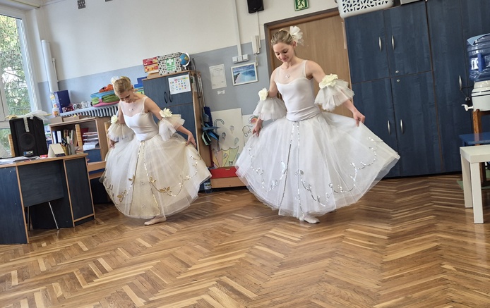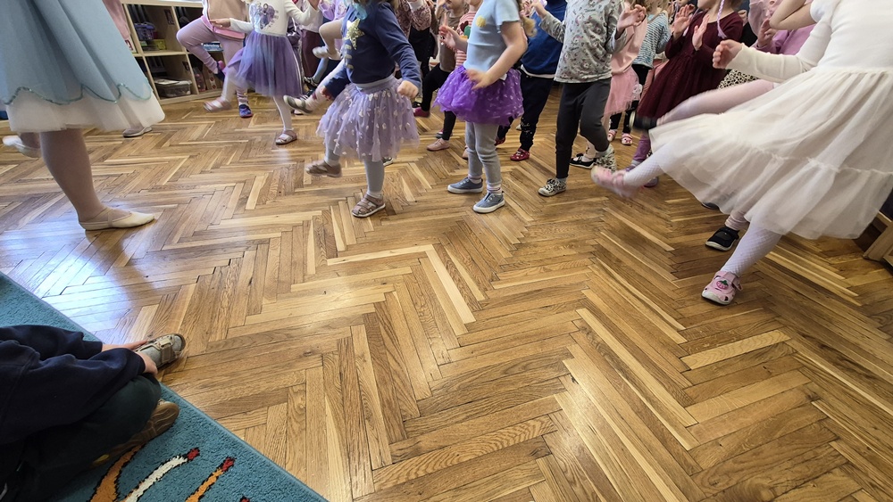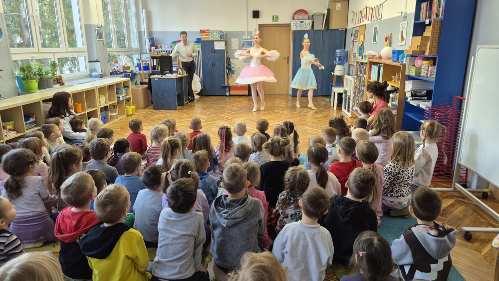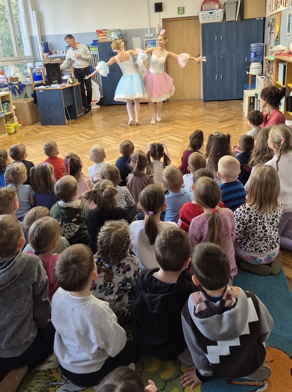 W piątek, 20 lutego, w naszym przedszkolu odbyło się wyjątkowe spotkanie baletowe, które dostarczyło dzieciom ze wszystkich grup wielu radosnych emocji i niezapomnianych wrażeń. Przedszkolaki miały okazję obejrzeć różne tańce, a także nauczyć się kilku tanecznych kroków. Nasza przedszkolna sala na chwilę zamieniła się w salę baletową. Spotkanie było nie tylko okazją do aktywności ruchowej, ale również do rozwijania wrażliwości muzycznej i artystycznej.