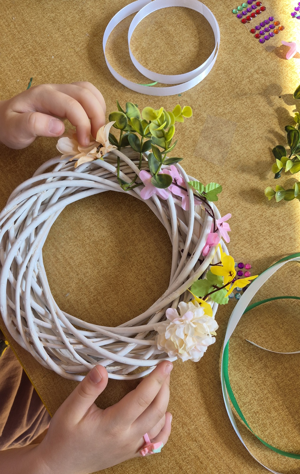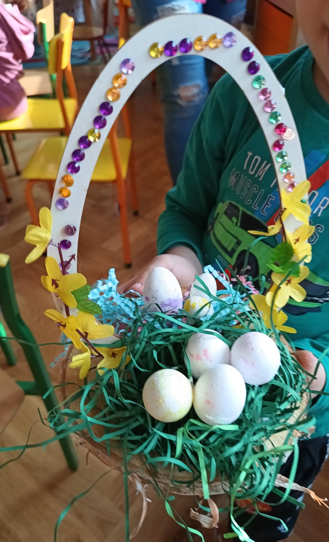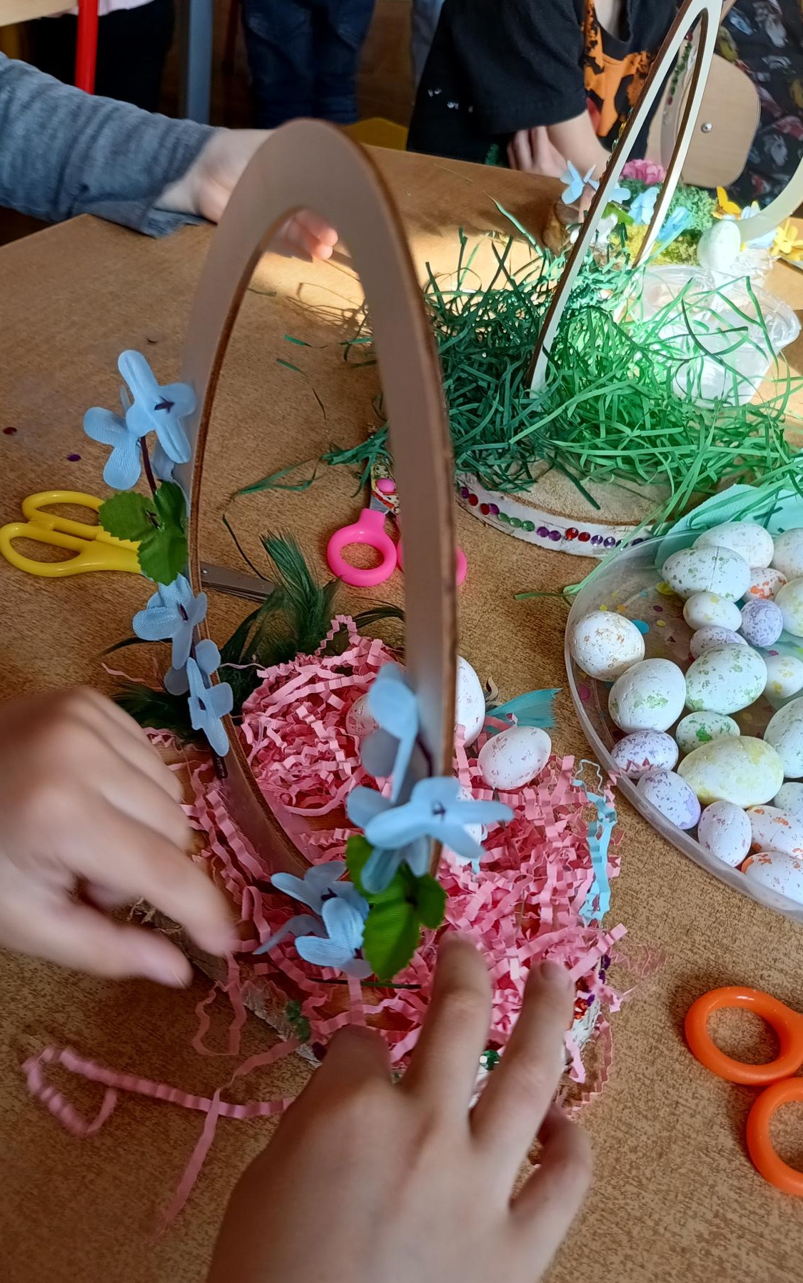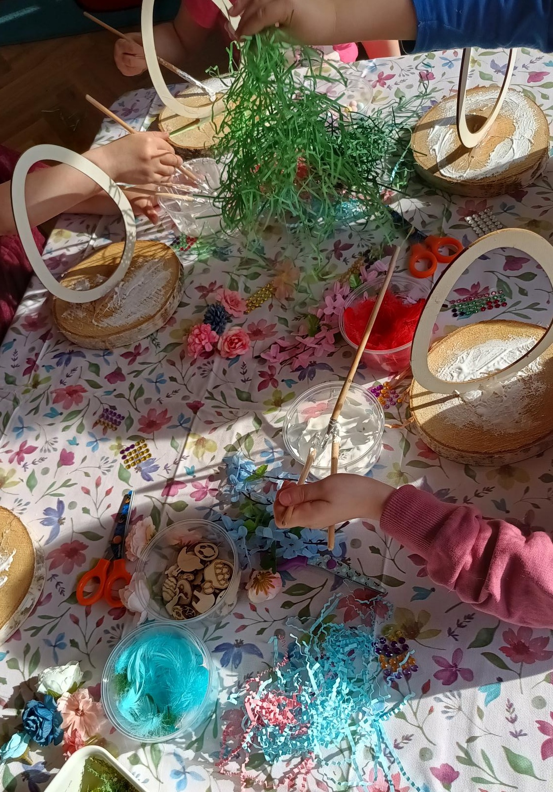 24 marca 2026 r. dzieci ze wszystkich grup wzięły udział w wyjątkowych wielkanocnych warsztatach, podczas których wykonały wianki i stroiki wielkanocne. Przedszkolaki miały okazję rozwijać swoją kreatywność oraz zdolności manualne. Z wielkim zaangażowaniem wybierały ozdoby, komponowały dekoracje i samodzielnie przygotowały swoje wyjątkowe prace.