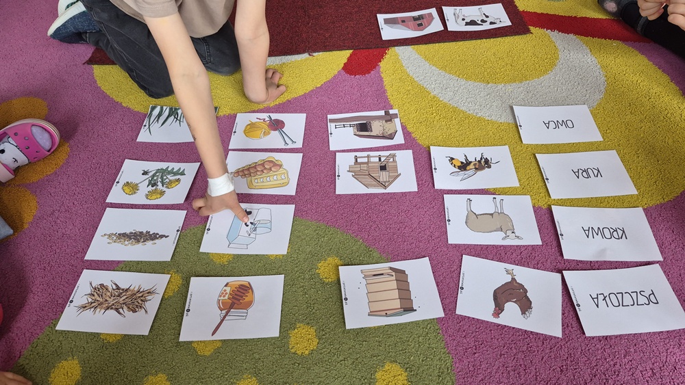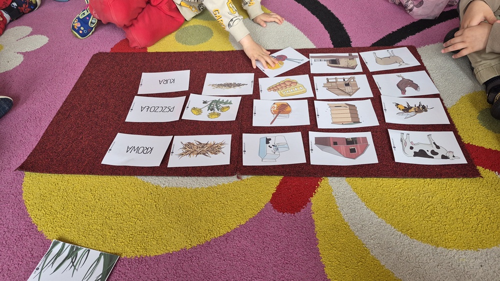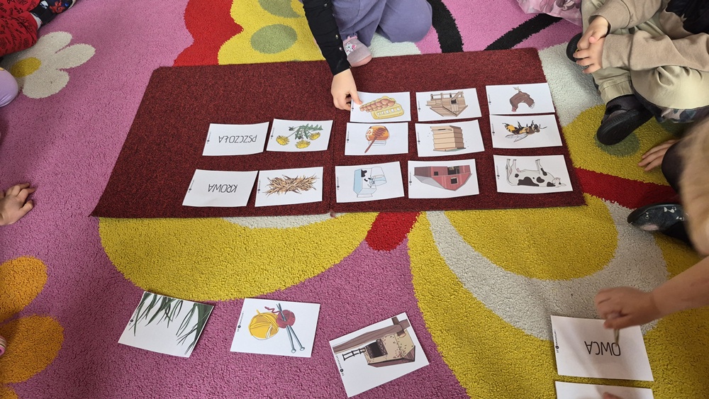 W ostatnim tygodniu w naszej grupie przenieśliśmy się na wieś - przypominaliśmy sobie jak nazywają się wiejskie zwierzęta, gdzie mieszkają, czym się żywią oraz co nam dają. Zastanawialiśmy się czym różni się wieś od miasta i klasyfikowaliśmy elementy charakterystyczne dla danego miejsca. Nie zabrakło również zabaw matematycznych - zaznaczaliśmy z wykorzystaniem darów Froebla jajka oznaczone cyframi lub kropkami zgodnie z liczbą oczek wyrzuconych na kostce. Na zakończenie tygodnia wykonaliśmy świnki z papierowych talerzyków.
