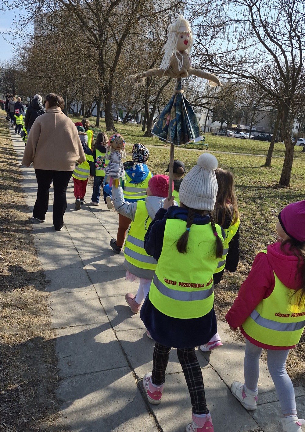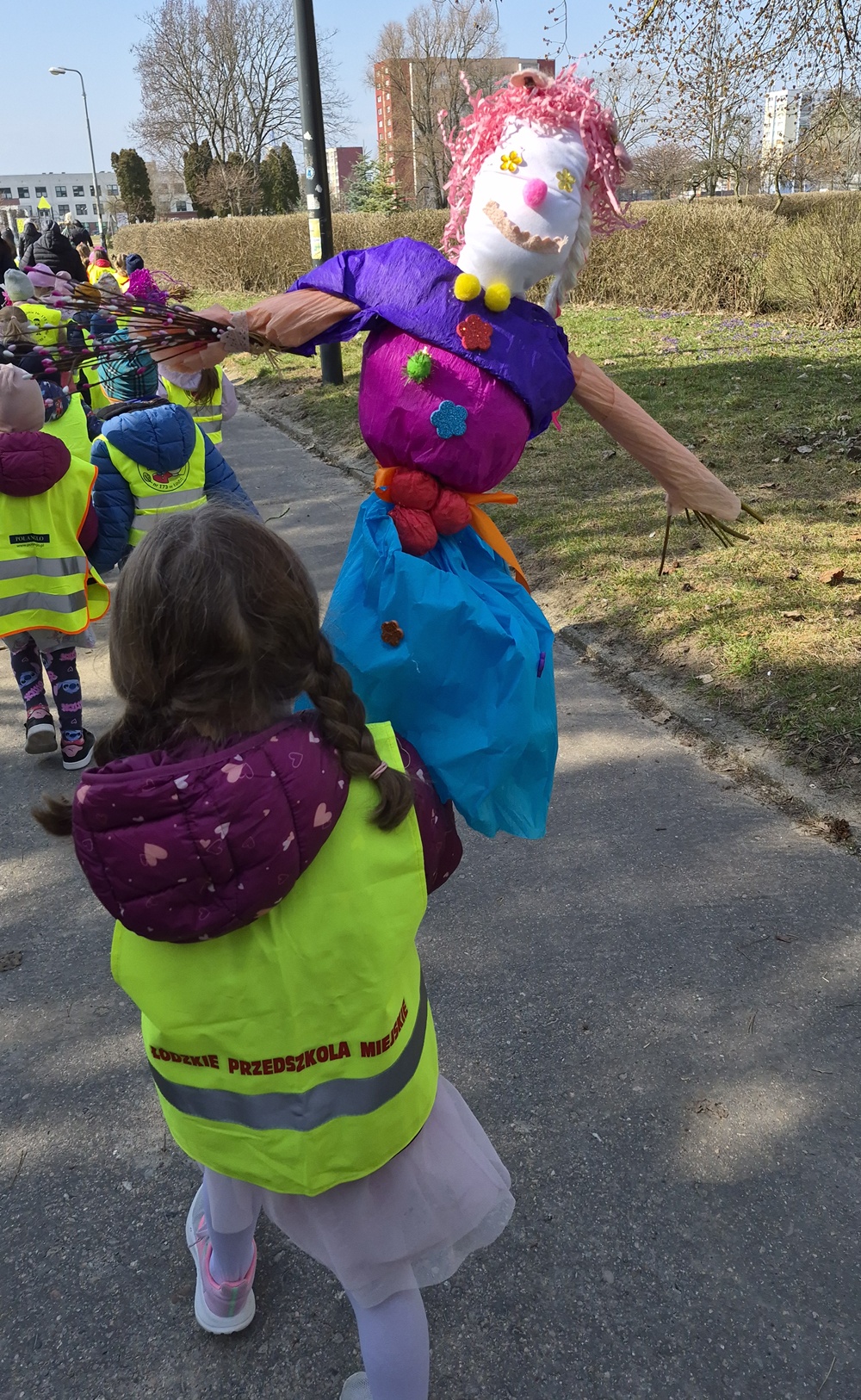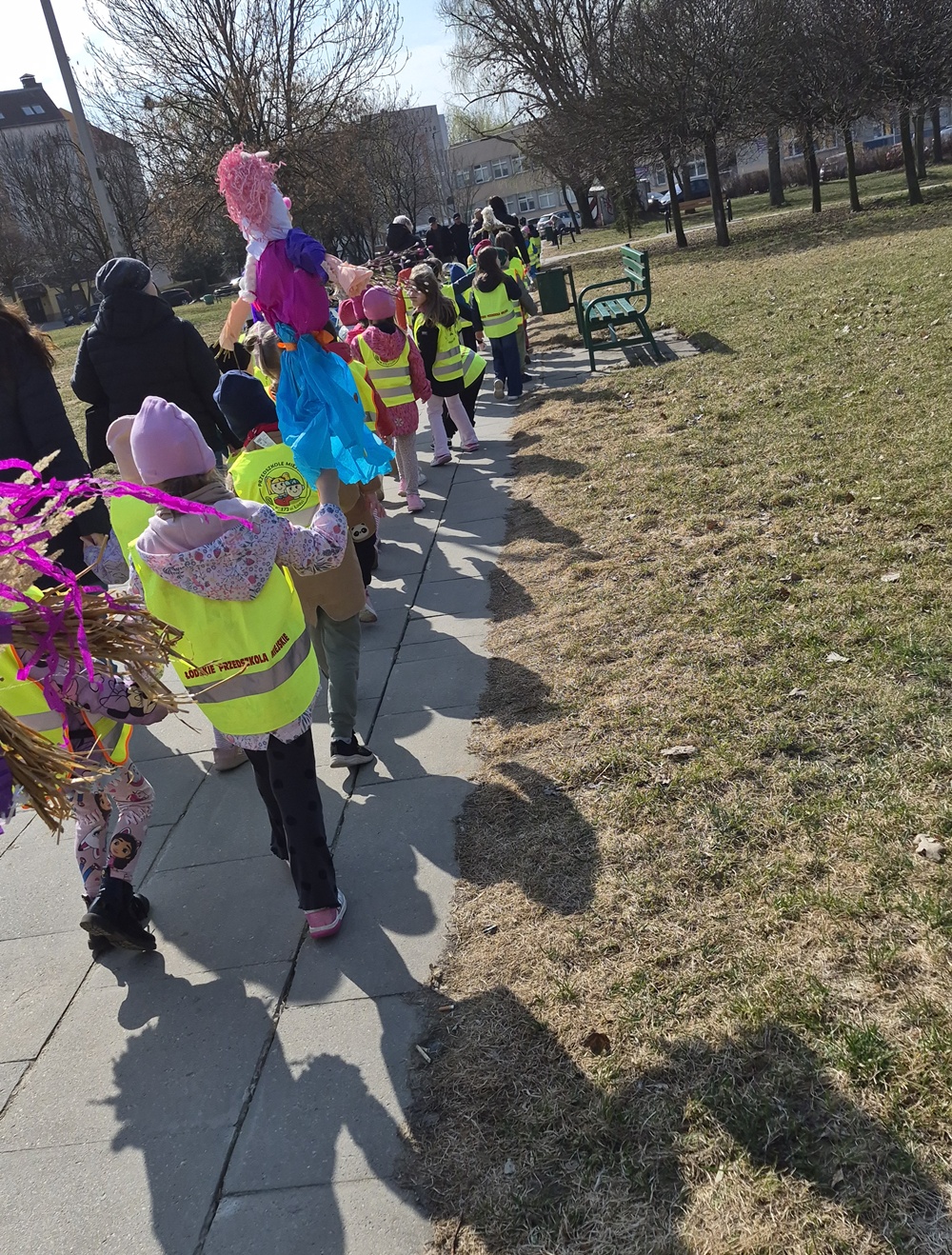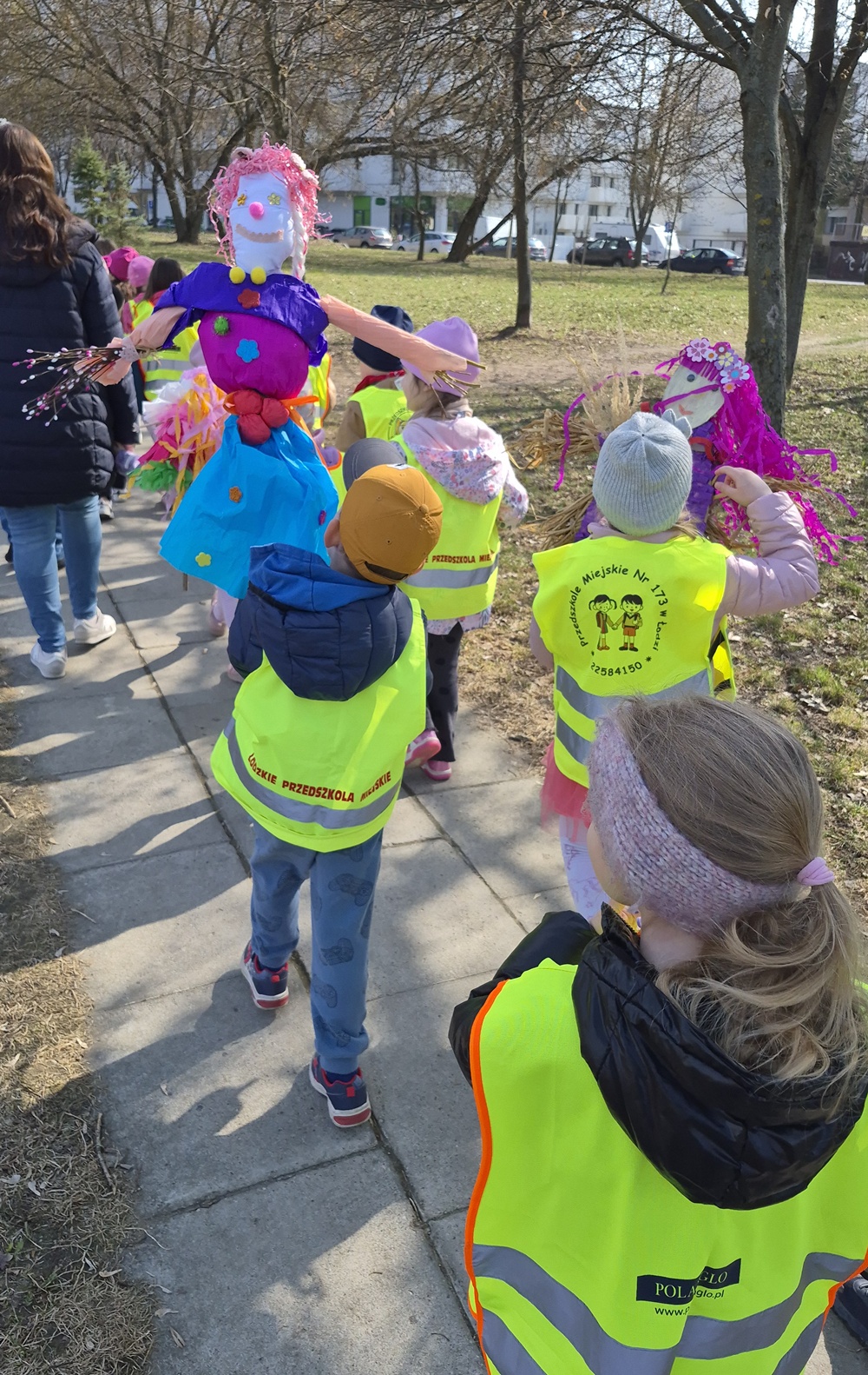 23 marca 2026 r. dzieci z grup: zielonej, fioletowej, pomarańczowej i niebieskiej przywitały wiosnę, biorąc udział w tradycyjnym spacerze z marzannami. Podczas spaceru przedszkolaki żegnały zimę, symbolicznie odprowadzając marzanny i zapraszając ciepłe, słoneczne dni. To był piękny czas wspólnej zabawy, integracji oraz kultywowania tradycji. Mamy nadzieję, że wiosna zagości u nas już na dobre.