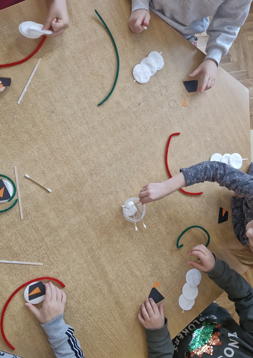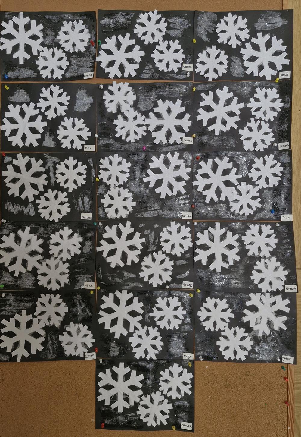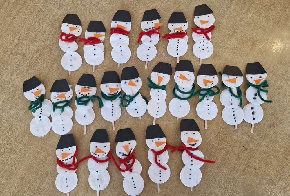 W minionym tygodniu dzieci z grupy fioletowej aktywnie korzystały z zimowej aury. Podczas zabaw na świeżym powietrzu radośnie bawiły się na śniegu - lepiły śnieżki, poszukiwały tropów ptaków, próbowały ulepić bałwana, ale niestety śnieg się nie lepił. W przedszkolu również towarzyszyły nam zimowe zabawy. Dzieci wykonały krystaliczne śnieżynki - przyklejały wycięte wzory na czarną kartkę, a następnie posypywały je solą i brokatem. Powstały wyjątkowe prace plastyczne, które zdobiły naszą tablicę. Dzieci tworzyły także bałwanki z wacików kosmetycznych, rozwijając swoją wyobraźnię i sprawność manualną. Był to tydzień pełen zimowych radości, twórczych działań i dobrej zabawy.